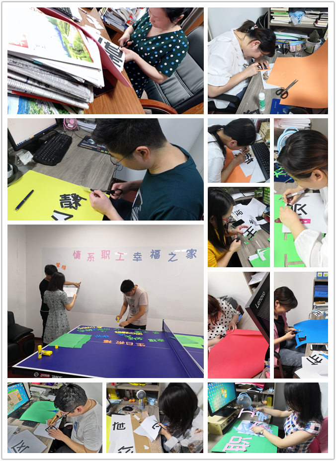 “你看我剪的就是這么完美”“對喲,你就是如此優(yōu)秀”,分公司機(jī)關(guān)全體員工齊動(dòng)員,相互協(xié)作,互相配合,你裁我剪,你剪我貼,在跳動(dòng)的文字中談工作、談理想,其樂融融,現(xiàn)場呈一片祥和之氣。當(dāng)成果呈現(xiàn),大家看著布置好的職工之家,滿眼都是成就的喜悅,臉上露出了愉快的笑容。