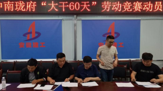 為確保“大干60天”勞動競賽順利進行,三公司懷遠中南·瓏府項目積極響應公司要求,提前籌劃,科學組織,合理安排,制定了切實可行的勞動競賽方案,做好人員分工,物資設備提前計劃等工作。召開動員大會,提出“大干60天,產(chǎn)值五千萬”的口號,并與各班組簽訂目標責任書,明確獎罰,鼓勵班組奮勇爭先,營造大干氛圍。