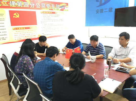2019年5月27日上午,四分公司黨支部開展了“黨員活動日”活動,集中學(xué)習了建工控股黨委關(guān)于持續(xù)深入扎實學(xué)好用好黨章的文件,并組織黨員對照黨章查擺問題,機關(guān)和合肥項目部黨員參加學(xué)習,黨支部書記董建民主持活動。
