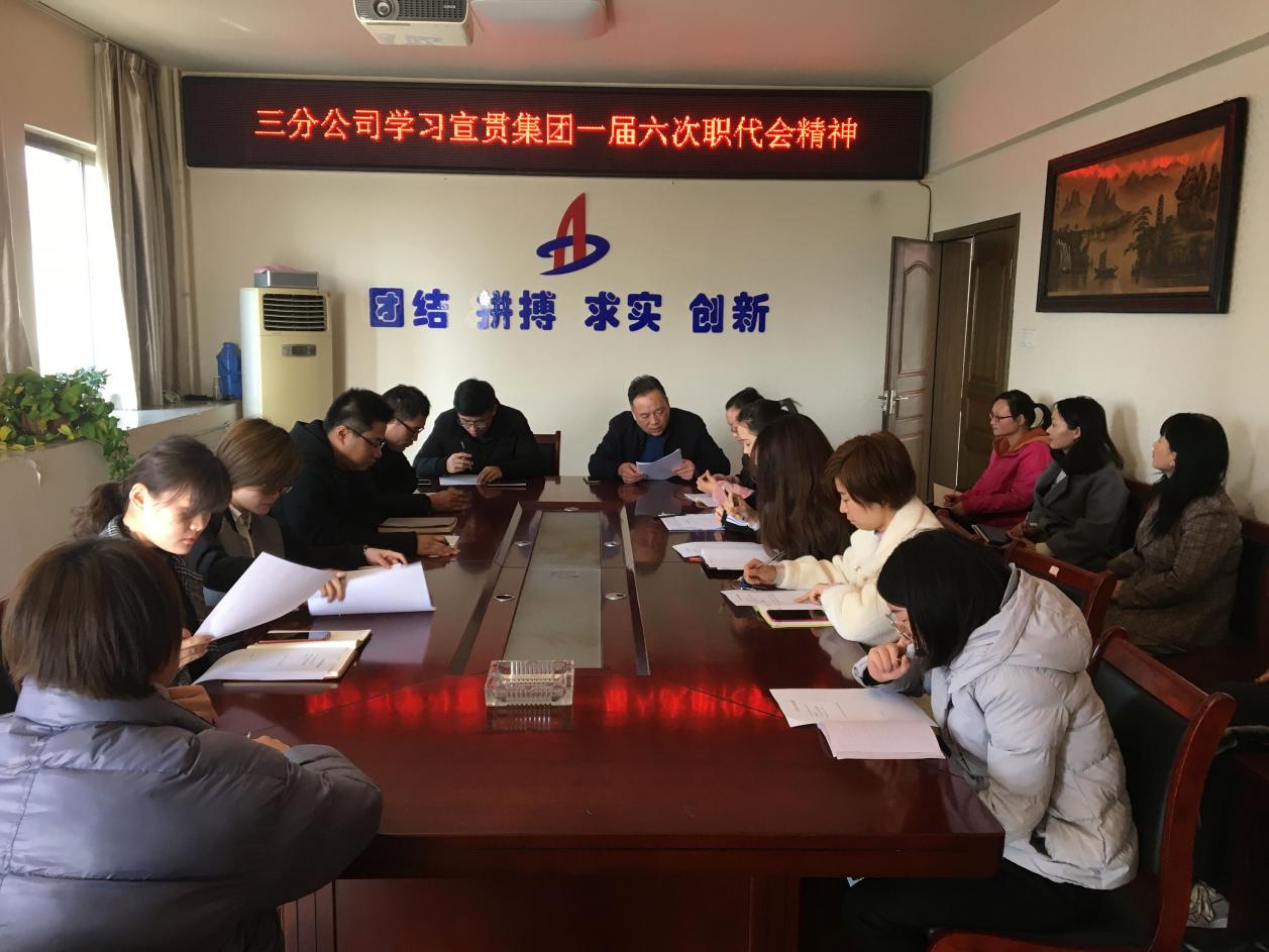 3月12日,三分公司組織機關(guān)全體員工在會議室學(xué)習(xí)宣貫集團一屆六次職代會精神,支部書記陳習(xí)武主持會議。